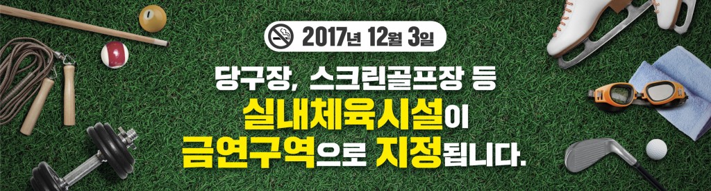 개정된 국민건강증진법에서는 ‘체육시설의 설치 이용에 관한 법률’에 따른 등록·신고 체육시설 중 실내 체육시설에 대해 금연구역으로 지정하도록 하고 있는데, 당구장과 실내스크린골프장이 여기에 해당하는 대표적 실내 체육시설이다.